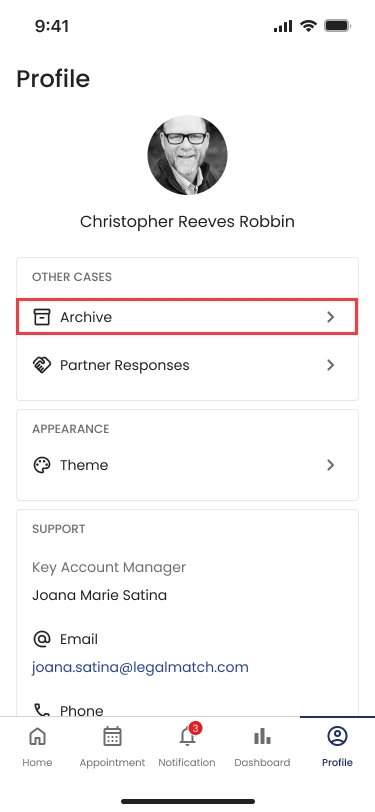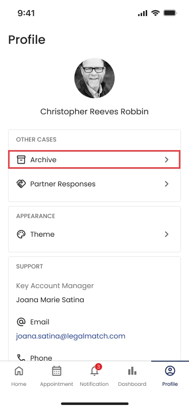 Note: Once you’ve archived a case, you can find it by going to your Profile then click Archive under Other Cases.