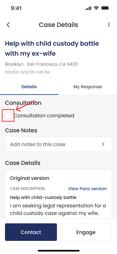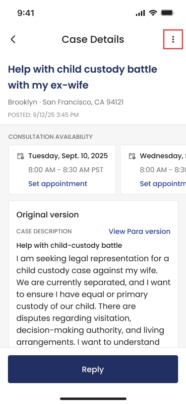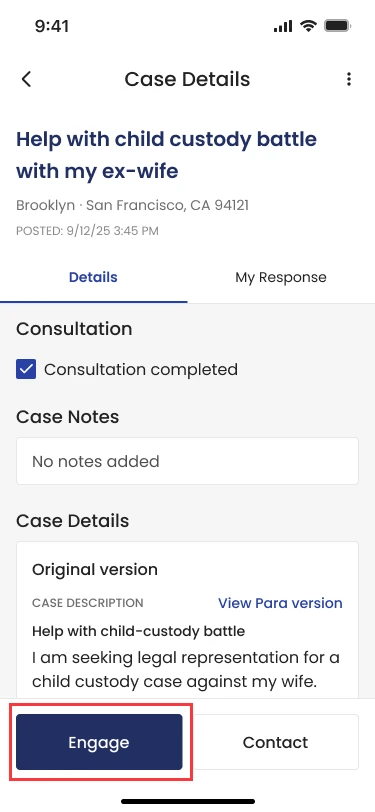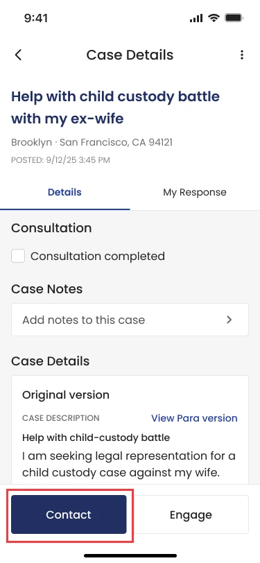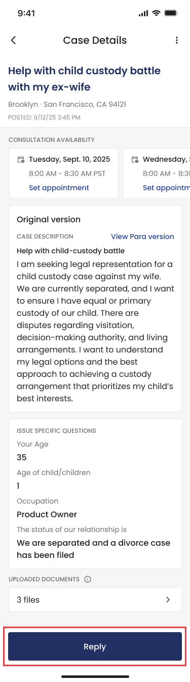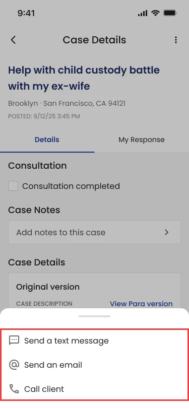 Note: We highly recommend you reply even if you don’t immediately see the value in a given lead. Many clients prefer to keep confidential information offline, and it would be a mistake to assume the case details we send are always complete or even entirely accurate. While some percentage of clients will not be a good match for your practice, you cannot know which ones solely from the information in their case details.