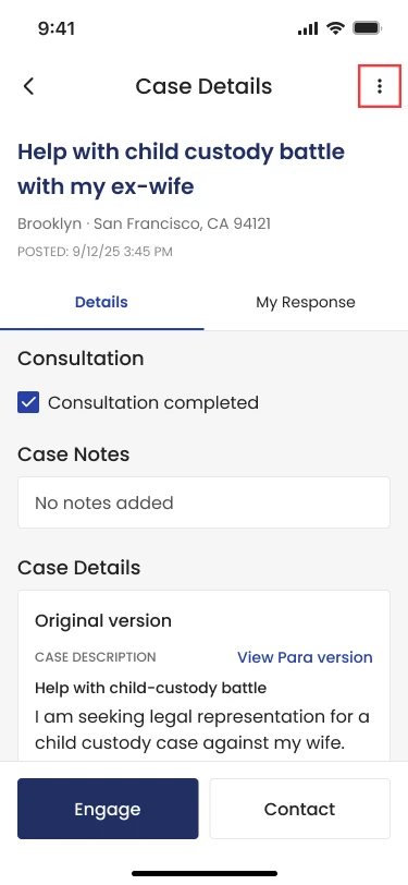 If you decide not to respond, you can use the three-dot “kebab” menu at the top right, to ARCHIVE the case.