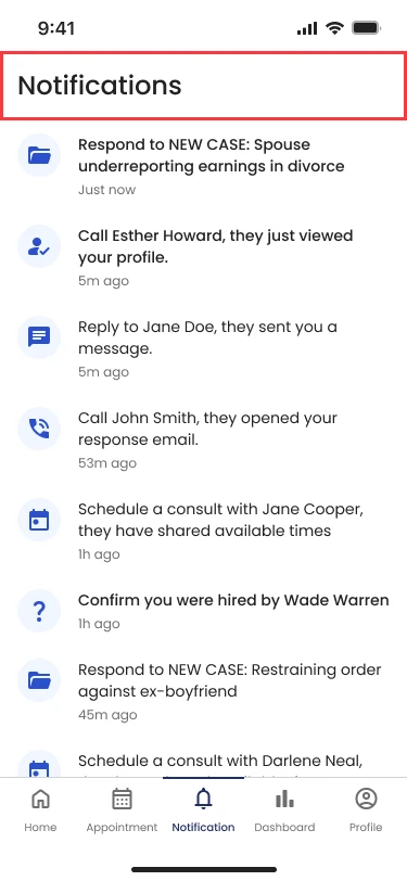 Here is where you can track client activities such as when a client views your profile, sends you a message, or confirms your appointment. The number on the notification icon corresponds to the total number of new notifications you have received.